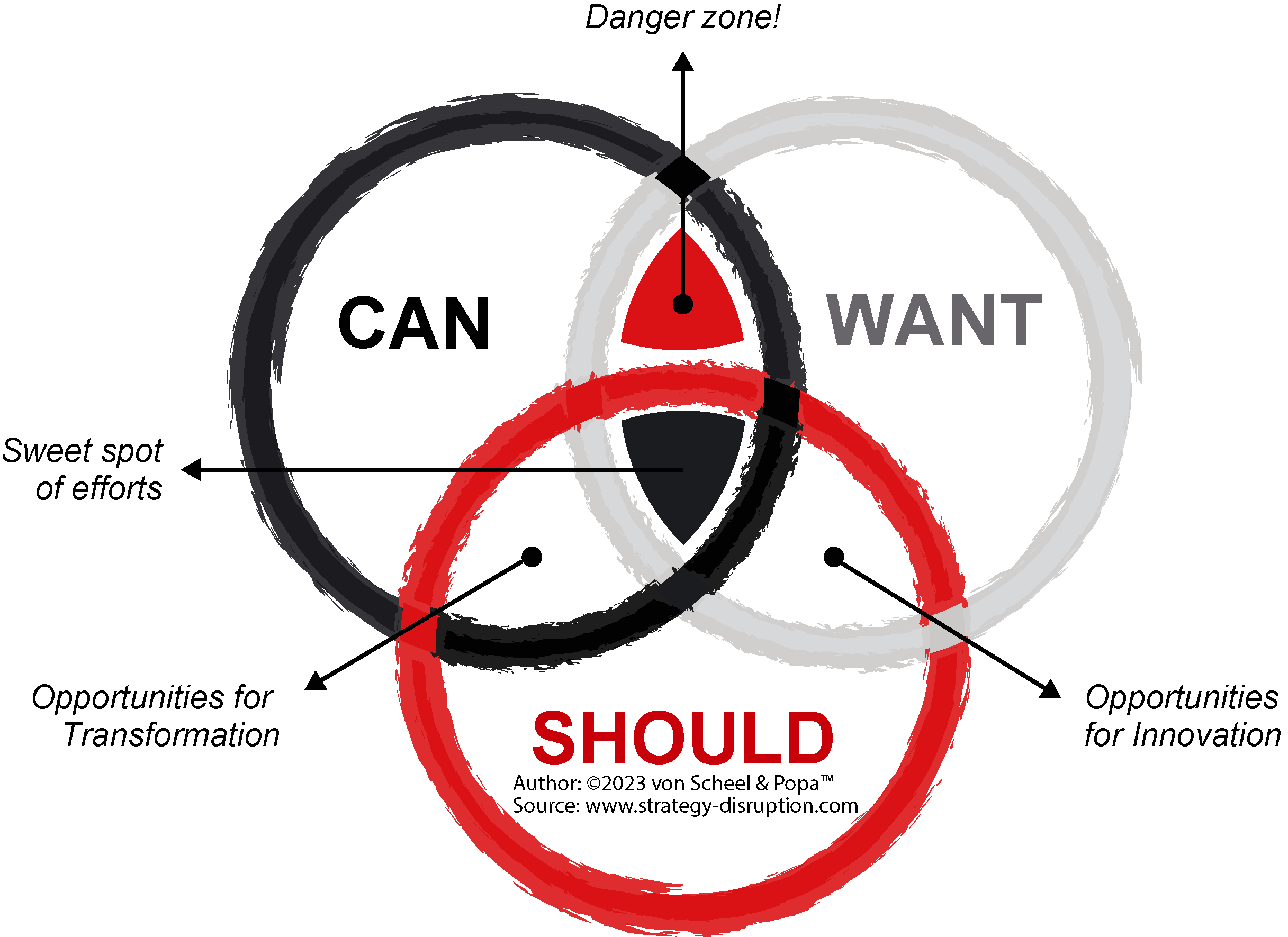 The CAN-WANT-SHOULD DO model is a proprietary graphical representation authored by Henrik von Scheel. Copyright registration: vyPnwCdqjAT4EN6D
